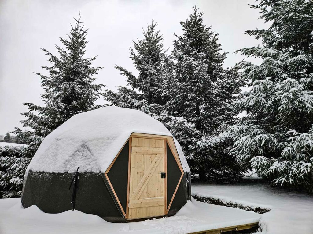 Pour une utilisation prolongée ou à l’année, nous proposons également un dôme géodésique isolé, conçu pour améliorer le confort thermique et permettre une exploitation 4 saisons.