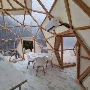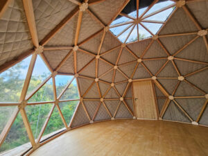 Choisissez le plancher adapté à votre dôme géodésique : panneaux en épicéa, OSB ou plancher avec isolant adapté à la préparation du sol.